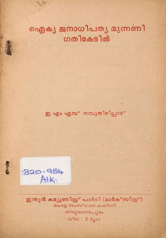 1989 - ഐക്യ ജനാധിപത്യ മുന്നണി ഗതികേടിൽ - ഇ.എം.എസ്. നമ്പൂതിരിപ്പാട്