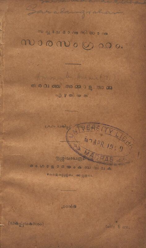 1920 - സർവ്വവേദാന്തസിദ്ധാന്ത സാരസംഗ്രഹം - തരവത്ത് അമ്മാളു അമ്മ