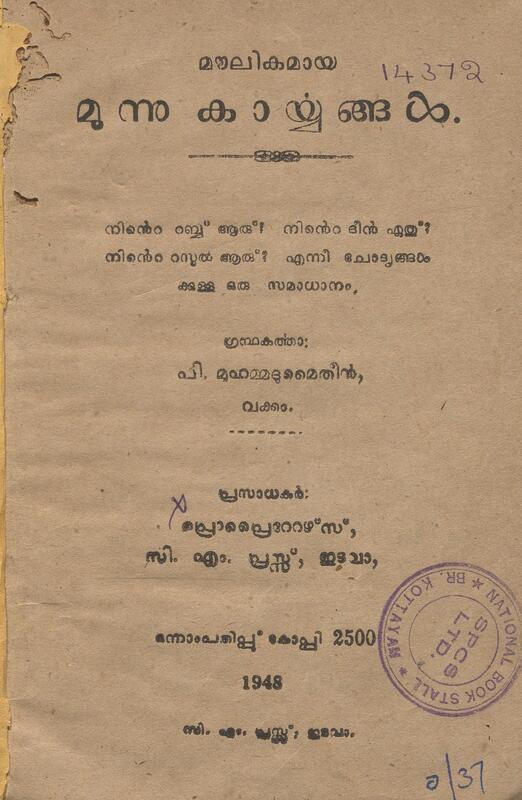 1948 - മൗലികമായ മൂന്നു കാര്യങ്ങൾ - പി. മുഹമ്മദുമൈതീൻ