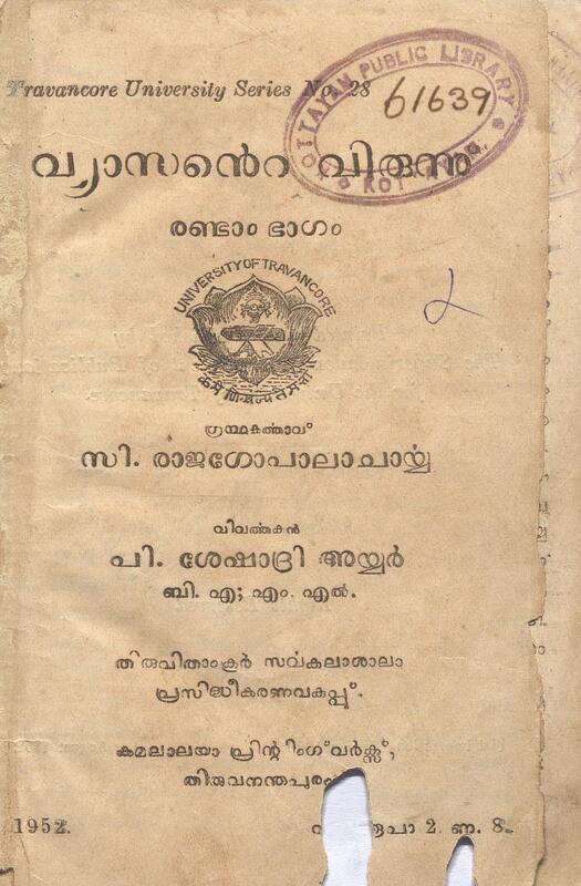 1952 - വ്യാസൻ്റെ വിരുന്ന് - രണ്ടാം ഭാഗം - സി. രാജഗോപാലാചാര്യ