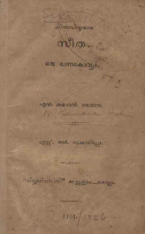 1926 - ചിന്താവിഷ്ടയായ സീത - എൻ. കുമാരൻ ആശാൻ