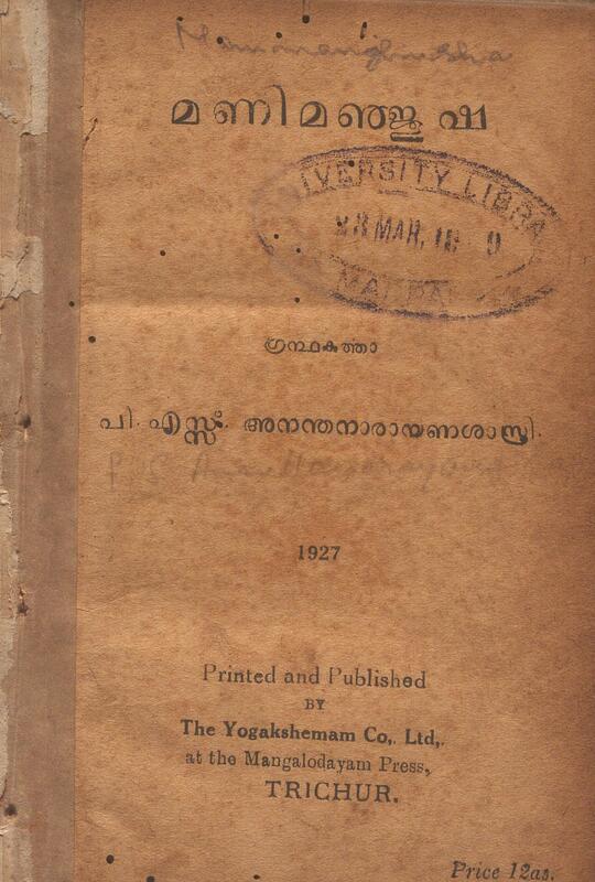 1927 - മണിമഞ്ജുഷ - പി.എസ്സ്. അനന്തനാരായണശാസ്ത്രി