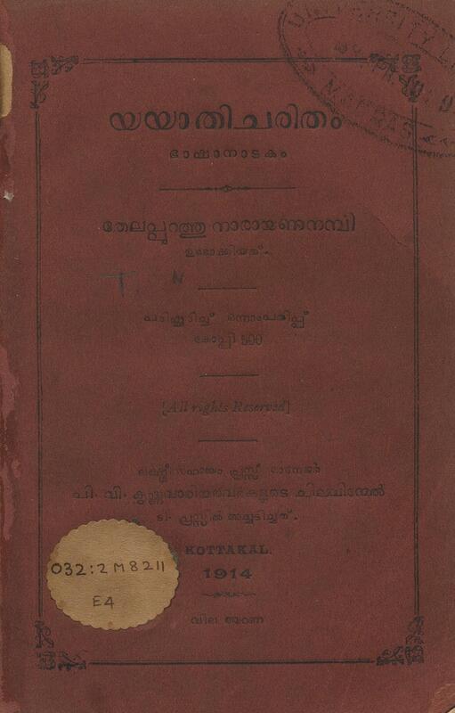 1914 - യയാതിചരിതം - തേലപ്പുറത്തു നാരായണനമ്പി