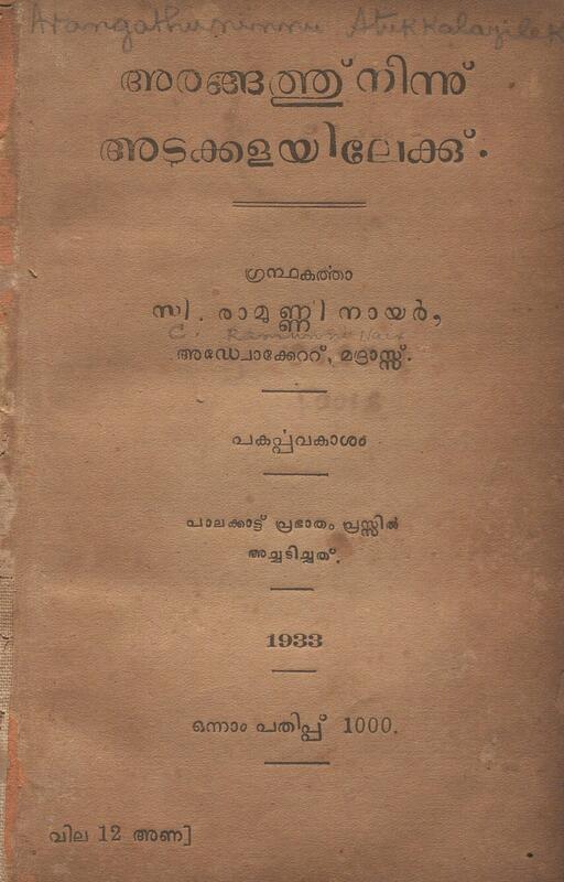 1933 - അരങ്ങത്തു നിന്നു അടുക്കളയിലേക്ക് - സി. രാമുണ്ണി നായർ