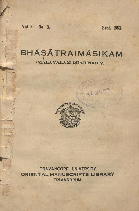 1953 - ഭാഷാത്രൈമാസികം - വോള്യം 3 ലക്കം 3
