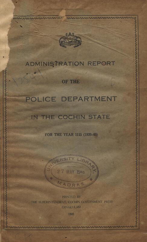 1941 - Administration Report Of The Police Department In The Cochin State For The Year 1939-1940